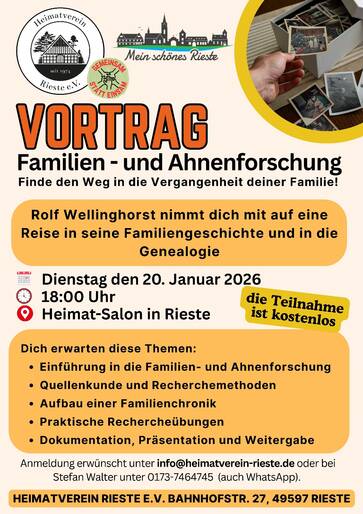 Heimatverein Rieste nahm Rolf Wellinghorst die Besucher mit auf eine Reise durch seine Familiengeschichte und Ahnenforschung.