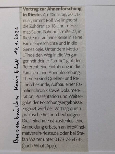 Heimatverein Rieste nahm Rolf Wellinghorst die Besucher mit auf eine Reise durch seine Familiengeschichte und Ahnenforschung.