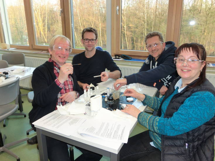 MooNi, Experimento 10+ und Lab in a drop – drei neue Experimentiersysteme sind im Einsatz am Artland-Gymnasium und am Lernstandort Grafelder Moor und Stift Börstel. Unsere von der Biologischen Station Osterholz entwickelte und durch Bingo Lotto geförderte „Moorschutz in Niedersachsen“ MooNi -Materialkiste enthält Experimente zum Kontext Moor und Klimaschutz. Auf einem zugehörigen Tisch sind die Lebensräume Hoch- und Niedermoor grafisch dargestellt und unter Verwendung von Magnetsymbolen werden die Zusammenhänge zwischen Eingriffen in Moorgebieten und ihren Folgen für Klima und Treibhauseffekt dargestellt. Zugehörige Experimente werden im Rahmen der Veranstaltung in Form eines Stationenlernens durchgeführt. Jürgen Christiansen und Rolf Wellinghorst nahmen im April an einer Schulung zu MooNi teil und führen das Angebot in Grafeld und Alfhausen durch. Die von der Siemens-Stiftung gestiftete Materialkiste Experimento 10+ enthält Versuche zu den Themenbereichen Energie, Umwelt und Gesundheit und wird betreut von Claudia Kähler, Maren Rauch und Rolf Wellinghorst. Das von Stephan Matussek entwickelte System Lab in a drop ermöglicht kostengünstige und mit geringem Gefahrenpotenzial durchführbare chemische und biologische Versuche im Mikromaßstab. Eine erste Lehrerfortbildung mit diesem System fand große Resonanz bei Lehrern, Studienreferendaren und Studenten.