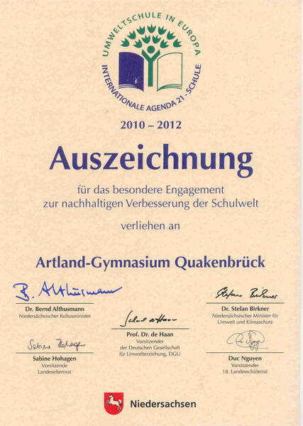 Das Artland-Gymnasium Quakenbrück hat seit 1988 umfangreiche Aktivitäten zur Umweltbildung entwickelt. Folgende Aspekte sind von besonderer Bedeutung: