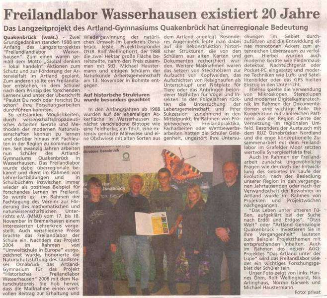 Historische Freilandlabor Wasserhausen wird seit 1988 von Rolf Wellinghorst betrieben und ist Projektort des Projektes "Das Leben einer Familie im Artland - gestern - heute - morgen". Die pädagogische Arbeit im Freilandlabor fand inzwischen auch überregional große Anerkennung (vgl. "Aktuell" auf dieser Homepage).